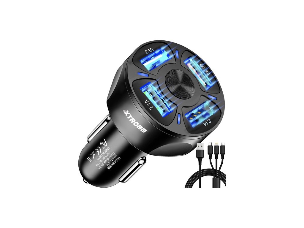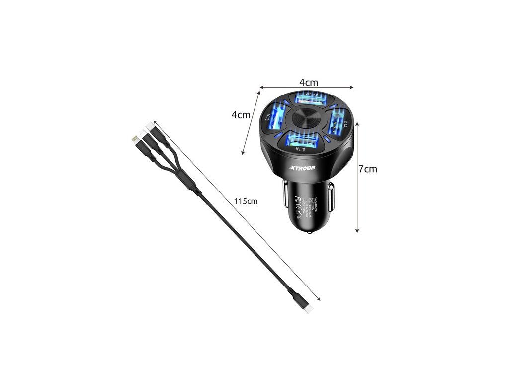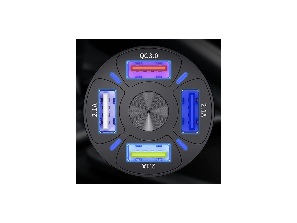 - 4 USB vstupy - Nabijete všechna svá USB zařízení - 1 rychlé nabíjení s funkcí Quick Charge - Šetření místa - Světlo - Šňůrový opletený kabel - Podsvícení při připojení do zásuvky zapalovače cigaret - 1 kabel - 3 koncovkyV balení
