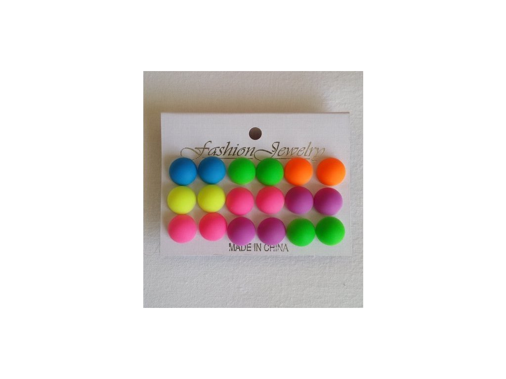 Náušnice neonové - 1,3 cm - sada 9 párů