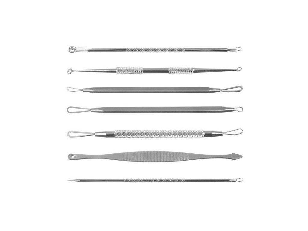 Tato sada obsahuje 7 oboustranných nástrojů pro bezpečné odstranění černých teček a pupínků.
