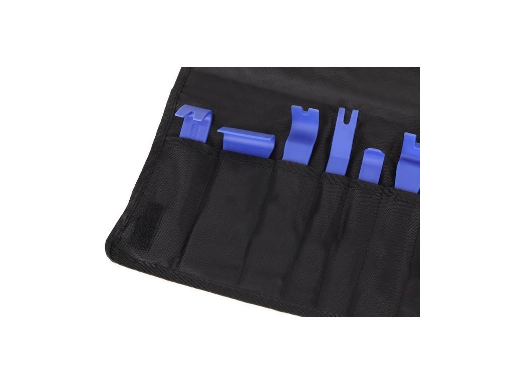 Profesionální sada nástrojů pro šetrné rozebrání čalounění, palubních desek a jiných částí vozidla při montáži např. autohifi nebo při opravách vnitřních částí vozidla.