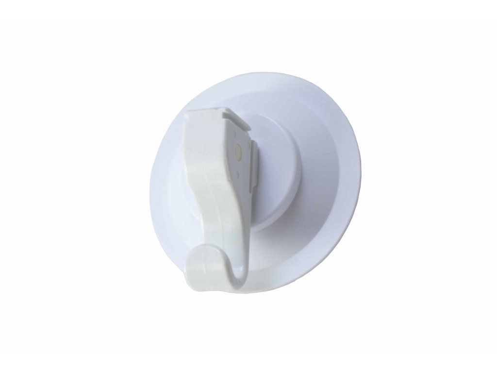 Praktický háček s pohyblivou plastovou páčkou, která slouží jako věšák a současně jejím stlačením háček přisajete.